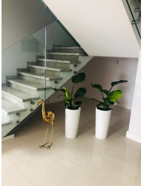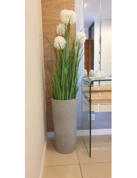 Donica z betonu architektonicznego okrągła wysokość 57cm. Donice z betonu architektonicznego wkomponowują się w nowoczesne wnętrza domów i biur oraz umożliwiają aranżację zieleni w przydomowych ogrodach i na tarasach. Różnorodne i nowoczesne modele donic wkomponują się w każdą przestrzeń. Donice z betonu są odpowiednio zaimpregnowane, dzięki czemu są wytrzymałe i odporne na czynniki zewnętrzne. Możemy zaoferować różne rozmiary donic zarówno w standardowych wymiarach jak i na indywidualne zamówienie. Dostępne są w czterech kolorach bielony, szary jasny, szary ciemny i antracyt.