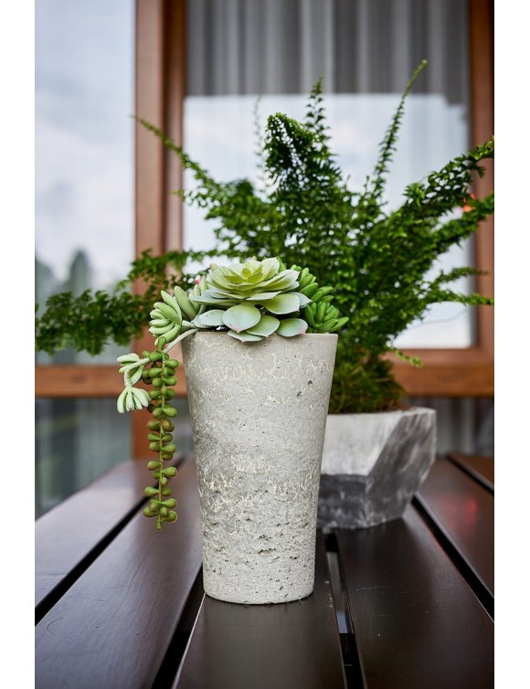 Donica Evela wykonana z betonu architektonicznego. Donice z betonu architektonicznego wkomponowują się w nowoczesne wnętrza domów i biur oraz umożliwiają aranżację zieleni w przydomowych ogrodach i na tarasach. Różnorodne i nowoczesne modele donic wkomponują się w każdą przestrzeń. Donice z betonu są odpowiednio zaimpregnowane, dzięki czemu są wytrzymałe i odporne na czynniki zewnętrzne. Możemy zaoferować różne rozmiary donic zarówno w standardowych wymiarach jak i na indywidualne zamówienie.