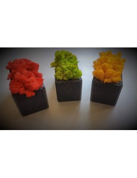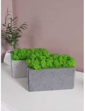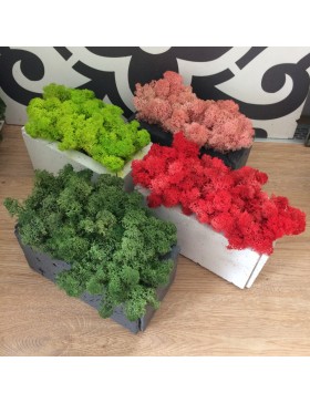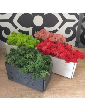 Donica z mchem (chrobotkiem reniferowym), to niezwykle oryginalny i niepowtarzalny akcent, który ożywi wnętrze każdego domu oraz biura. W ofercie posiadamy szeroki wybór struktur i kolorów mis oraz różnorodną kolorystykę mchu: niebieski, czerwony, seledynowy, ciemny zielony oraz żółty. Bogaty wybór kolorów oraz struktur sprawi, iż misa z mchem dostosuje się do każdego pomieszczenia i nada mu niewielki element naturalności.