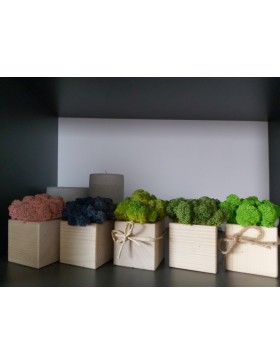 Dostępne kolory mchu: spring green, moss green, medium green, light green grass, lavender blue, red, pink, yellow, natural, pacific green, cyclamen