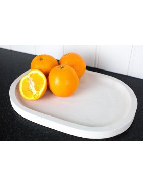 Taca PIATTO wykonana z betonu architektonicznego o owalnym kształcie. Sprawdzi się w kuchni na zioła, w jadalni na owoce, w łazience na ulubione perfumy, a w sypialni na biżuterię. Może stanowić uzupełnienie każdego wnętrza.
