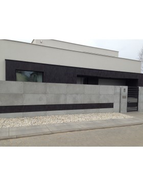 Podstawowy wymiar płyt 120x60 grubość 20mm. Płyty z betonu architektonicznego dostępne są w wariantach kolorystycznych: jasny szary, ciemny szary. Dostępne są faktury: gładka, średnio porowata i porowata. Płyty gładkie nie posiadają porów, płyty mało porowate charakteryzują się występowaniem pojedynczych wżerów, aa płyty średnio porowate na całej powierzchni posiadają nieregularne pory i wżery, rozłożone na całej powierzchni. Cechą charakterystyczną betonu są przebarwienia oraz rozbieżności kolorystyczne, nie jest to wada produktu.
