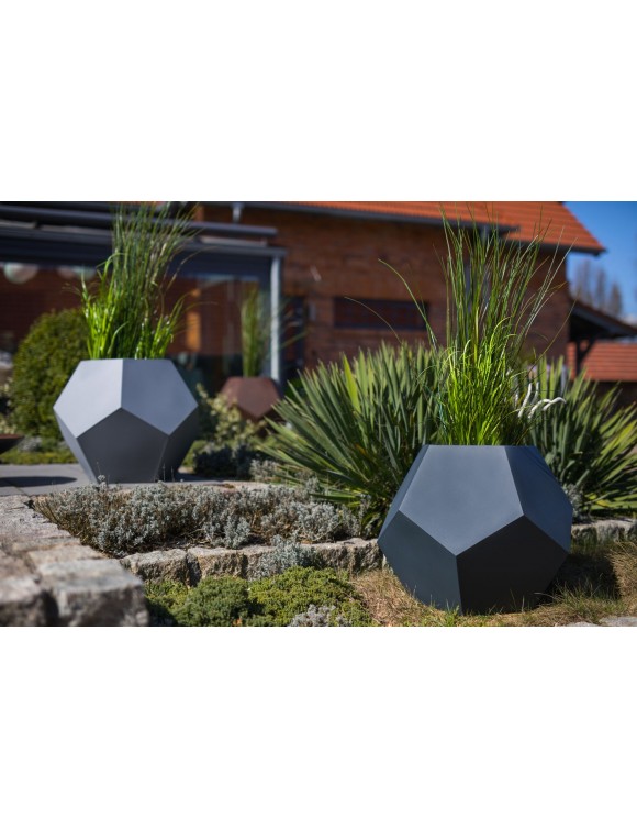 Nowoczesna, geometryczna donica Alma swoim stylowym kształtem przyciąga uwagę. Ostre, nowoczesne linie donicy Alma zdecydowanie przypadną osobom szukającym nowoczesnych dodatków do swojego domu, ogrodu lub na tarasach. Donica Alma świetnie wpisuje się w aktualny trend donic o designerskich kształtach. Nowoczesne, ostre kształty donicy Alma spowodują, że donica przypadnie do gustu nawet najbardziej wymagającym odbiorcom. Donica Alma sprawdzi się jako duża ozdobna donica do biura, donica na taras lub donica do ogrodu. Wersja podświetlana donicy Alma rozświetli wnętrze domu lub sprawdzi się jako lampa ogrodowa.