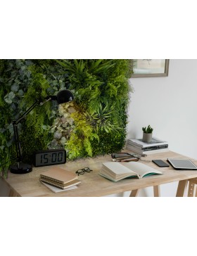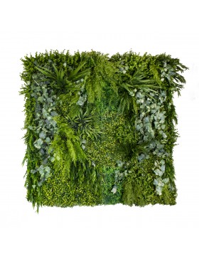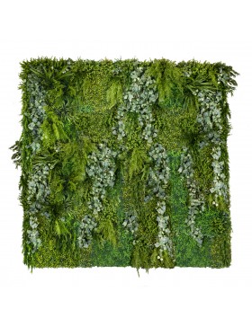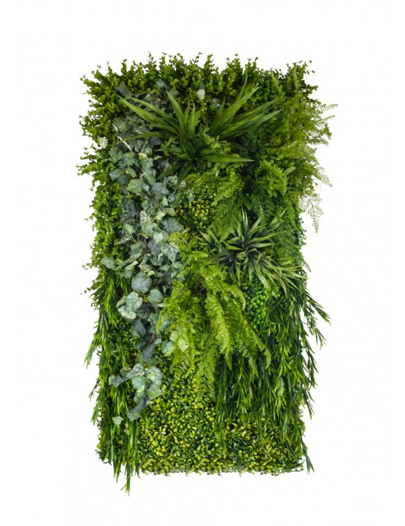 Panel Alpine to kompozycja o zróżnicowanej wysokości poszczególnych roślin i niepowtarzalnej strukturze. Łączy w sobie drobne liście dziurawca z obfitymi paprociami oraz niezwykłym bluszczem. rośliny pięnie ze sobą współgrają, tworząc niezwykłą całość.