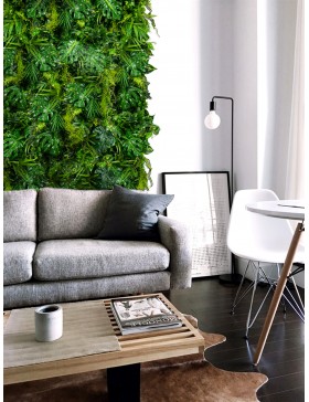 Kompozycja Rooth Path stworzy Twój wymarzony, ogród na ścianie w mieszkaniu czy biurze. Tło lasu stanowią porastające bluszcze i geranium. Na pierwszym planie prezentują się naturalne korzenie drzew, monstera ogromne liście, mięsiste aloesy i królewskie palmy. Maty mają zastosowanie w każdym wnętrzu i na każdej powierzchni. Ażurowa siatka z łątwością dostosuje się do każdej powierzchni. Rośliny wykonane są z wysokiej klasy materiałów dzięki czemu wyglądają jak żywe, nie sprawiają wrażenia sztuczności. Rośliny sztuczne to doskonałe rozwiązanie do każdego rodzaju wnętrza. W naszej ofercie znajdują się różnorodne kompozycje do wnętrz oraz na zewnątrz, dzięki czemu każdy znajdzie coś dla siebie. Zapoznaj się z naszą ofertą i wybierz matę, która najbardziej Ci odpowiada.