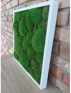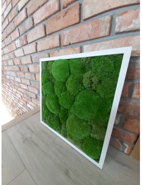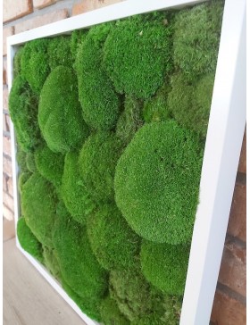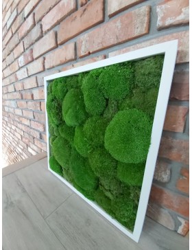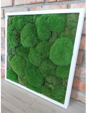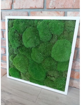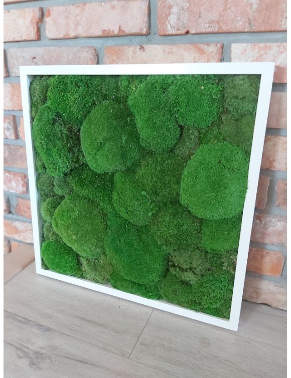 Obraz z mchu poduszkowego o wymiarach 50x50cm. To oryginalny gadżet, który ożywi każde pomieszczenie i przyciągnie wzrok odwiedzających. Doskonale zaprezentuje się zarówno jako obraz na ścianie jak i ozdoba naszych mebli. Obraz wykonany ręcznie, wypełniony pięknym zielonym mchem poduszkowym.