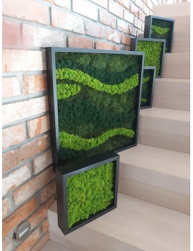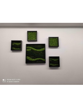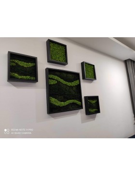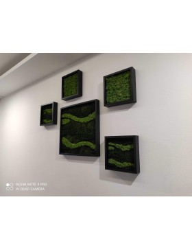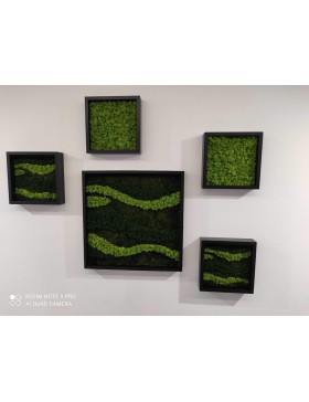 Ramka o wymiarach 27x27cm z wypełnieniem z mchu płaskiegow oraz chrobotkiem różnorodnej kolorystyce. To oryginalny gadżet, który ożywi każdepomieszczenie i przyciągnie wzrok odwiedzających. Doskonale zaprezentuje się zarówno jako obraz na ścianie jak i ozdoba naszych mebli.