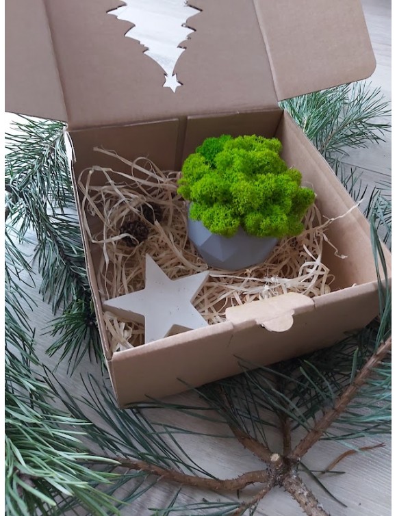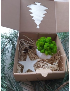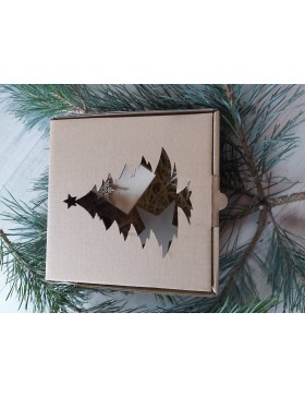 Podarunek zapakowany w eko opakowanie z choinką. Wymiar pudełeczka prezentowego 20x10x10cm