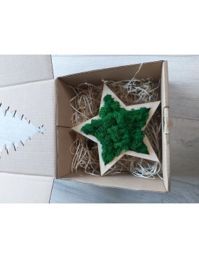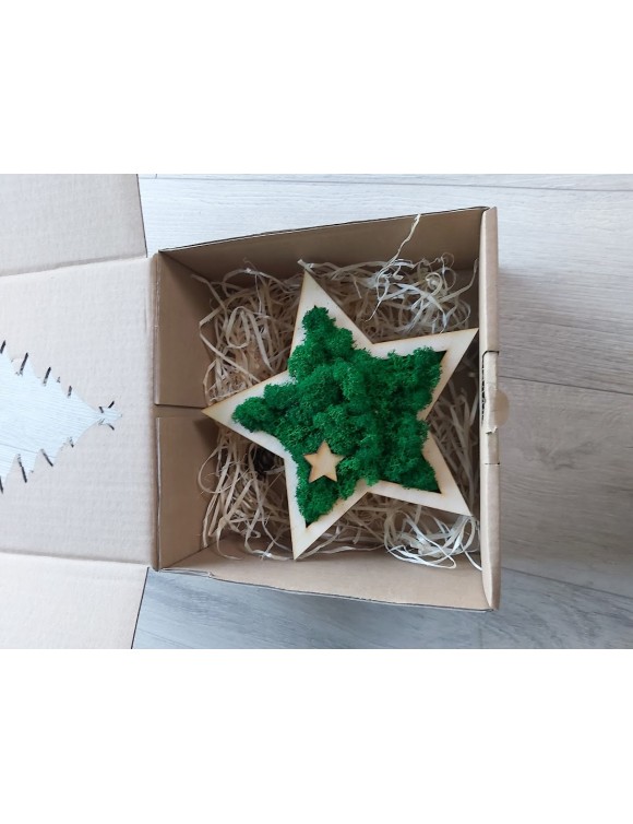Gwiazdka z pięknym zielonym wypełnieniem z chrobotka reniferowego, to świąteczna ozdoba, kóra wprowadzi niezwykły klimat do każdego wnętrza. Gwiazdka to również pomysł na świąteczny prezent, który z pewnością zachwyci obdarowaną osobę.