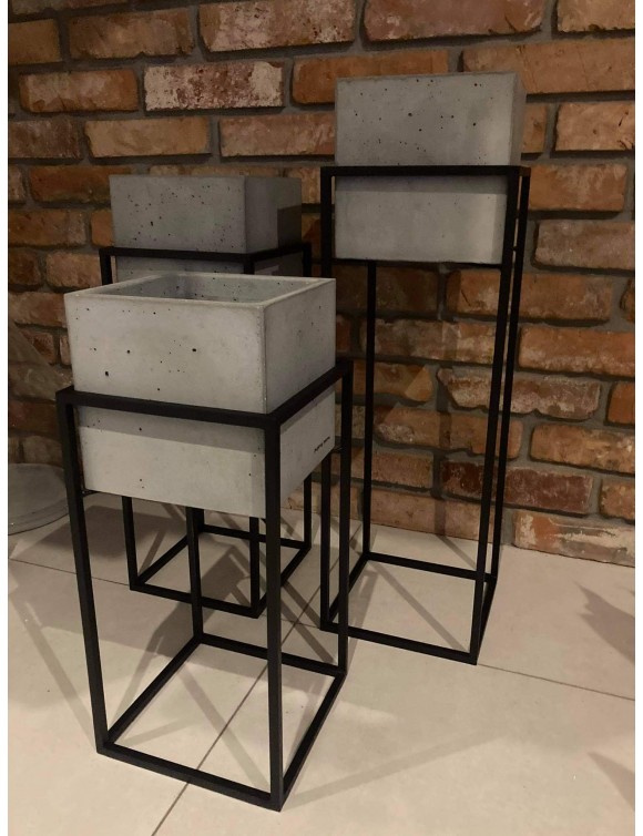 Nowoczesny, metalowy kwietnik, stojak loft z donicą betonową. Piękny minimalistyczny wykonany z czarnego metalu doskonale wkomponuje się w każde loftowe wnętrze. Stojak, donica sprawdzi się również w aranżacjach na tarasie, balkonie czy w biurze. Solidne wykonania sprawi, że przez wiele lat będzie zdobiła Nasze wnętrza. W połączeniu z kwietnikami o różnych rozmiarach stworzy niezwykłe, oryginalne dekoracje w loftowym wnętrzu.