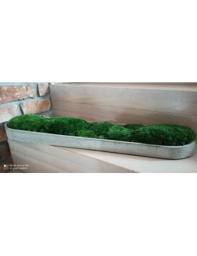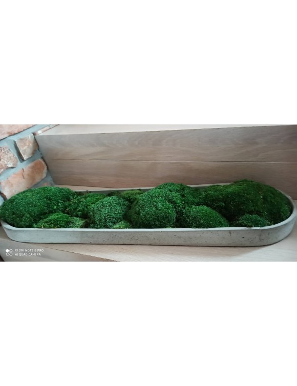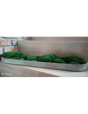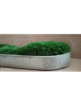 W swoim asortymencie posiadamy paterę betonową wypełnioną pięknym, zielonym mchem poduszkowym. Doskonale nadaje się do wyeksponowania mchu poduszkowego. Spełnia wiele funkcji w zależności od zapotrzebowania. Jej płaska, wąska, podłużna forma z zaokrąglonymi końcami dopasuje się do każdego miejsca w twoim domu np. do parapetu, szafki czy stolika. Wystarczy tylko użyć swojej wyobraźni.