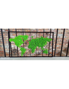 Obraz z mchem, mapa świata, dekoracja ścienna