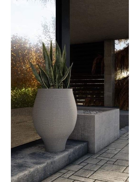 Donica Hera z betonu wykonana ręcznie na kole garncarskim. Donice wkomponowują się w nowoczesne wnętrza domów i biur oraz umożliwiają aranżację zieleni w przydomowych ogrodach i na tarasach. Różnorodne i nowoczesne modele donic wkomponują się w każdą przestrzeń. Donice z betonu są odpowiednio zaimpregnowane, dzięki czemu są wytrzymałe i odporne na czynniki zewnętrzne.