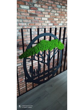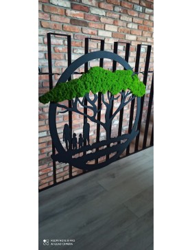 Obraz Rodzina z chrobotkiem, średnica 90cm. To oryginalny gadżet, który ożywi każde pomieszczenie i przyciągnie wzrok odwiedzających. Doskonale zaprezentuje się zarówno jako obraz na ścianie jak i ozdoba naszych mebli.