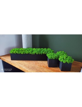 Donica z mchem (chrobotkiem reniferowym), to niezwykle oryginalny i niepowtarzalny akcent, który ożywi wnętrze każdego domu orazbiura. W ofercie posiadamy szeroki wybór struktur i kolorów donic oraz różnorodną kolorystykę mchu: niebieski, czerwony, seledynowy, ciemny zielony oraz żółty. Bogaty wybór kolorów oraz struktur sprawi, iż donica z mchem dostosuje się do każdego pomieszczenia i nada mu niewielki element naturalności.