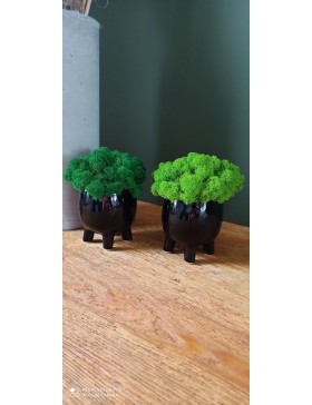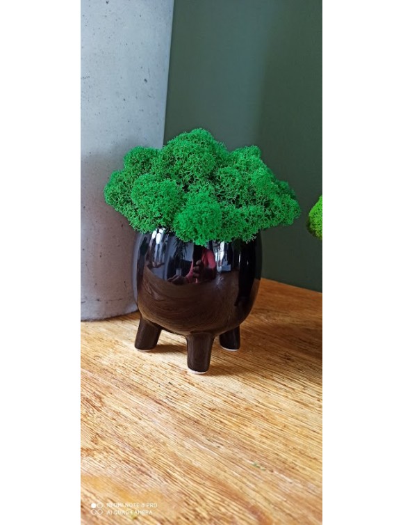 Doniczka na nóżkach z mchem to drobny element dekoracyjny w domu i biurze. Dzięki bogatej kolorystyce ożywią każde pomieszczenie i dodadzą mu koloru oraz oryginalnego wymiaru. Staną się niepowtarzalną ozdobą naszego domu i przyciągną uwagę odwiedzających nas gości.