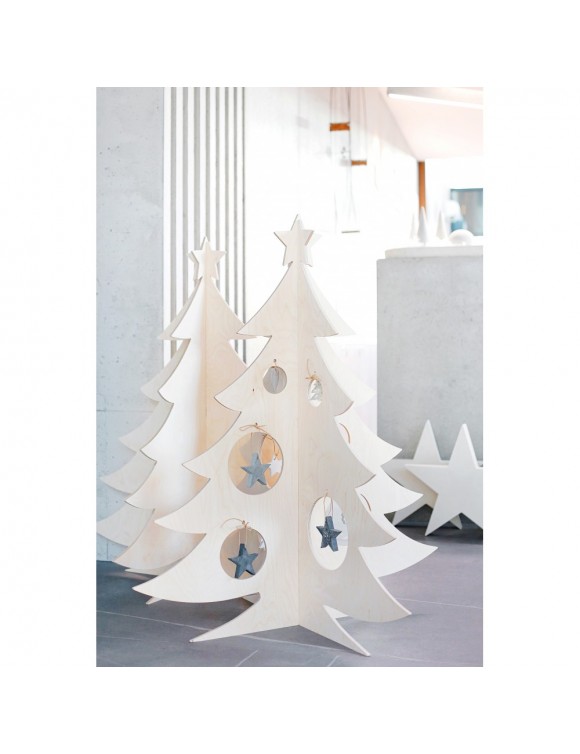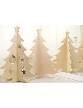 Ozdobna Choinka wykonana ze sklejki. Doskonale zastąpi tradycyjną choinkę, lub sprawdzi się w każdym wnętrzu jako świąteczna dekoracja. Choinka posiada wycięte otwory, w których można zawiesić ozdoby świąteczne, np.: betonowe zawieszki : serduszko, choinkę, gwiazdkę, śnieżkę.