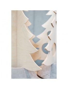 Ozdobna Choinka wykonana ze sklejki o dwóch grubościach: 4mm i 9mm, z podstawą z betonu architektonicznego. Doskonała świąteczna ozdoba, która sprawdzi się w każdym wnętrzu.