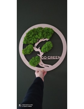 Drzewko bonsai z chrobotkiem, dekoracja ścienna, średnica 40cm.