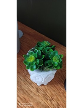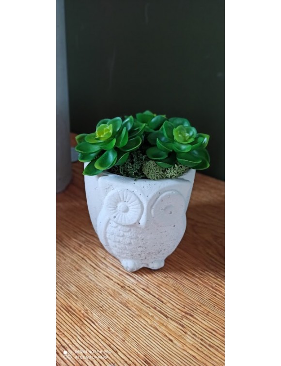 Doniczka sowa z pięknym sztucznym sukulentem . Elegancki, subtelny upominek na dla Niej i dla Niego lub piękna ozdoba Twojego wnętrza. Romantyczne i nietuzinkowe połączenie betonu architektonicznego z sukulentem.