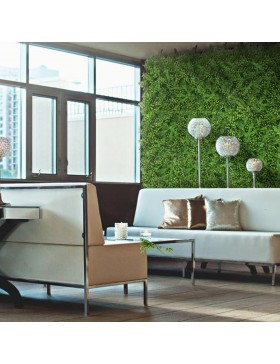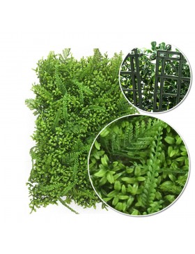 Model Cienistka reprezentuje maty ścienne dekoracyjne. Składa się z trzech rodzajów roślin. Bazę stanowią drobne liski bukszpanu, spośród których wyłaniają się dłuższe liście dwóch gatunków paproci. Całość tworzy bogatą strukturę idealną do zaaranżowania ogrodu wertykalnego. Za pomocą tej maty w łatwy sposób stworzysz bogaty ogród wertykalny, Twoją prywatną oazę. Mata jest elastyczna i odporna na złamania oraz wilgoć. Gałązki cienistki sięgają ok. 4-9 cm długości, dlatego w łatwy sposób pokryjesz nią zaplanowaną powierzchnię. Możesz ją stosować wszędzie, niezależnie od wielkości i kształtu ściany, sufitu czy słupa. Ażurowa siatka z tworzywa jest giętka, więc z łatwością dostosujesz ją do obłych powierzchni. Jest również prosta do cięcia nawet za pomocą domowych nożyczek. Bez problemu dotniesz ją pod skosem lub wytniesz w niej otwór na gniazdko elektryczne. Maty to doskonałe rozwiązanie do każdego rodzaju wnętrza. W naszej ofercie znajdziesz też wiele innych modeli i wzory ogrodów o zróżnicowanej kolorystyce i strukturze. Odcień mat może się zmieniać z zależności od partii. Sprawdź i wybierz najlepiej pasującą Ci matę.