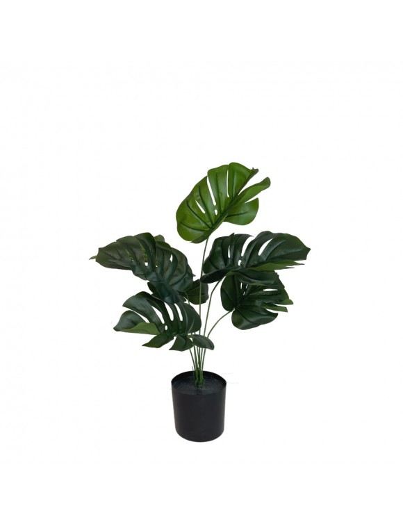 Monstera to roślina o dużych zielonych liściach w kształcie serca. Wycięcia w liściach to cecha charakterystyczna tych roślin. Kwiat monstera sięga tu 60cm. Monstery sprawdzą się jako sztuczne rośliny do salonu czy biura. To doskonały sposób na zapewnienie stylowej dekoracji przestrzeni i poprawę samopoczucia.