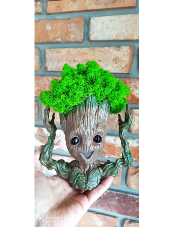 Grott, stworek, głowa z mchem