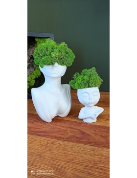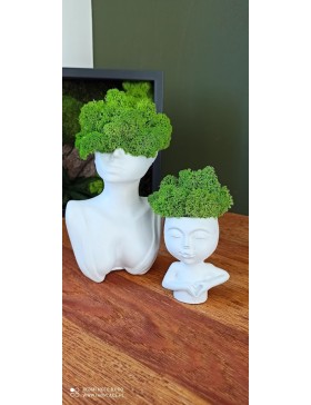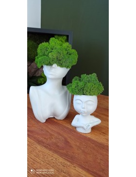 Doniczka głowa z mchem to drobny element dekoracyjny w domu i biurze. Dzięki bogatej kolorystyce ożywią każde pomieszczenie i dodadzą mu koloru oraz oryginalnego wymiaru. Staną się niepowtarzalną ozdobą naszego domu i przyciągną uwagę odwiedzających nas gości.