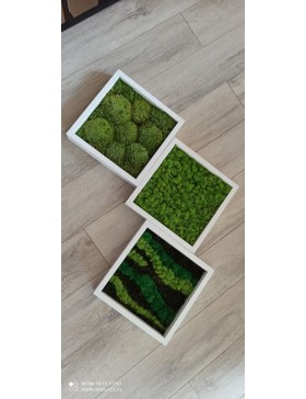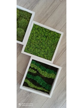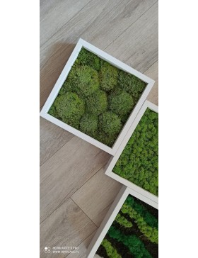 Ramka o wymiarach 25x25cm z wypełnieniem z mchu w różnorodnej kolorystyce. To oryginalny gadżet, który ożywi każdepomieszczenie i przyciągnie wzrok odwiedzających. Doskonale zaprezentuje się zarówno jako obraz na ścianie jak i ozdoba naszych mebli.