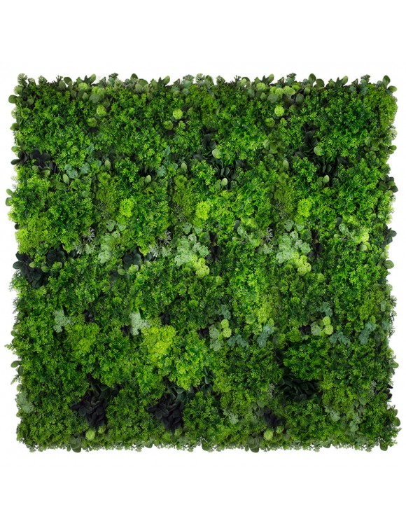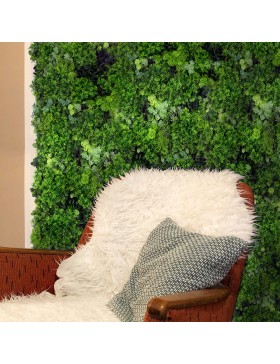 Sztuczny mech na ścianę Moss Mesh to idelana opcja dla osób szukających bezobsługowej zielonej ściany z mchu. Kompozycja łączy w sobie kilka gatunków o różnej strukturze i kolorystyce, uzupełnionych drobnymi liśćmi roślin leśnych. Ta piękna i gęsta aranżacja to niewątpliwy hit sezonu, który idealnie pasuje do każdego rodzaju wnętrza. Panele Moss Mesh to mech dekoracyjny, który pasuje zarówno do salonu czy łazienki jak i biura lub restauracji.