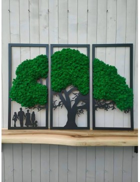 Tryptyk drzewko z Rodziną, obraz z chrobotkiem 70x105cm