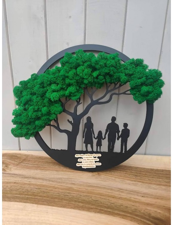 Obraz Rodzina z chrobotkiem. To oryginalny gadżet, który ożywi każde pomieszczenie i przyciągnie wzrok odwiedzających. Doskonale zaprezentuje się zarówno jako obraz na ścianie jak i ozdoba naszych mebli. Drzewko to także doskonały pomysł na prezent.