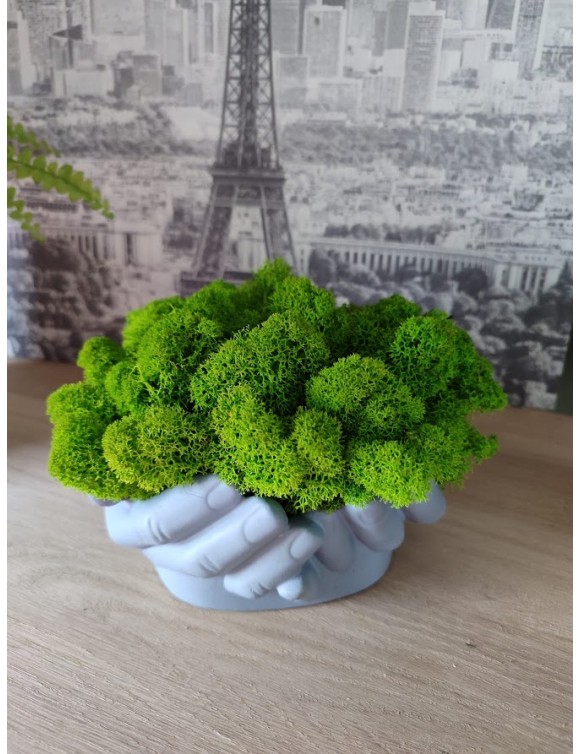 Piękna doniczka betonowa w kształcie dłoni z chrobotkiem to drobny element dekoracyjny w domu i biurze. Dzięki bogatej kolorystyce ożywią każde pomieszczenie i dodadzą mu koloru oraz oryginalnego wymiaru. Staną się niepowtarzalną ozdobą naszego domu i przyciągną uwagę odwiedzających nas gości.
