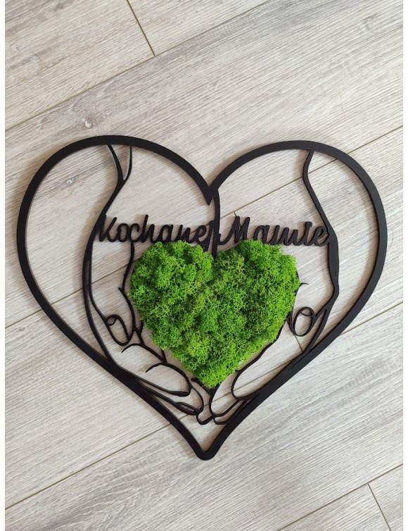 Serce na dłoniach z chrobotkiem, obraz, prezent z okazji Dnia Mamy 30cmSerce na dłoniach z chrobotkiem, obraz, prezent z okazji Dnia Mamy 30cm