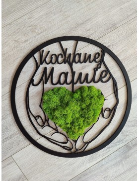 Serce na dłoniach z chrobotkiem, obraz, prezent z okazji Dnia Mamy 30cm