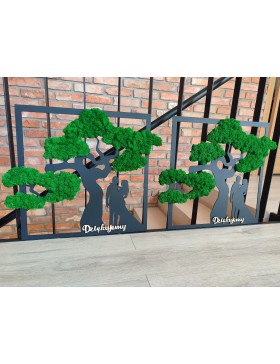 Drzewko z Parą Młodą z pięknym zielonym chrobotkiem. Piękny, niepowtarzalny prezent, podziękowanie dla Rodziców, Dziadków, Świadków. Dedykacja dowolna.To oryginalny gadżet, który ożywi każde pomieszczenie i przyciągnie wzrok odwiedzających. Doskonale zaprezentuje się zarówno jako obraz na ścianie jak i ozdoba naszych mebli.
