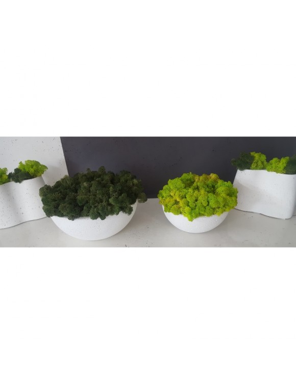 Misa z mchem (chrobotkiem reniferowym), to niezwykle oryginalny i niepowtarzalny akcent, który ożywi wnętrze każdego domu oraz biura. W ofercie posiadamy szeroki wybór struktur i kolorów mis oraz różnorodną kolorystykę mchu: niebieski, czerwony, seledynowy, ciemny zielony oraz żółty. Bogaty wybór kolorów oraz struktur sprawi, iż misa z mchem dostosuje się do każdego pomieszczenia i nada mu niewielki element naturalnośc