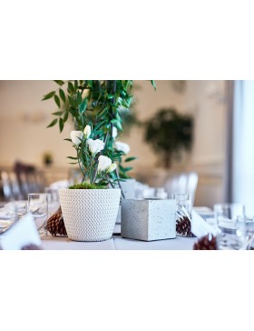 Donica plecionka wykonana z betonu architektonicznego. Donice z betonu architektonicznego wkomponowują się w nowoczesne wnętrza domów i biur oraz umożliwiają aranżację zieleni w przydomowych ogrodach i na tarasach. Różnorodne i nowoczesne modele donic wkomponują się w każdą przestrzeń. Donice z betonu są odpowiednio zaimpregnowane, dzięki czemu są wytrzymałe i odporne na czynniki zewnętrzne. Możemy zaoferować różne rozmiary donic zarówno w standardowych wymiarach jak i na indywidualne zamówienie, w wielu wariantach kolorystycznych.