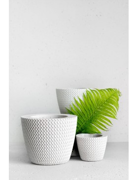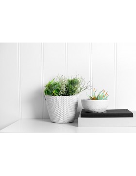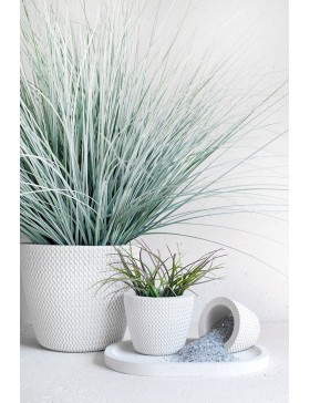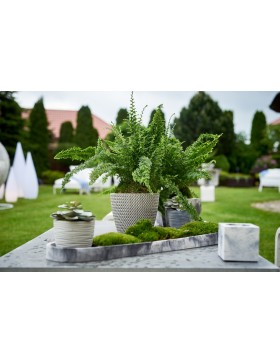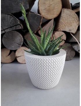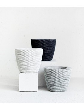 Donica plecionka wykonana z betonu architektonicznego. Donice z betonu architektonicznego wkomponowują się w nowoczesne wnętrza domów i biur oraz umożliwiają aranżację zieleni w przydomowych ogrodach i na tarasach. Różnorodne i nowoczesne modele donic wkomponują się w każdą przestrzeń. Donice z betonu są odpowiednio zaimpregnowane, dzięki czemu są wytrzymałe i odporne na czynniki zewnętrzne. Możemy zaoferować różne rozmiary donic zarówno w standardowych wymiarach jak i na indywidualne zamówienie, w wielu wariantach kolorystycznych.