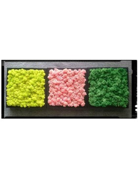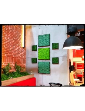 Ramka o wymiarach 25x25cm z wypełnieniem z mchu w różnorodnej kolorystyce. To oryginalny gadżet, który ożywi każdepomieszczenie i przyciągnie wzrok odwiedzających. Doskonale zaprezentuje się zarówno jako obraz na ścianie jak i ozdoba naszych mebli.