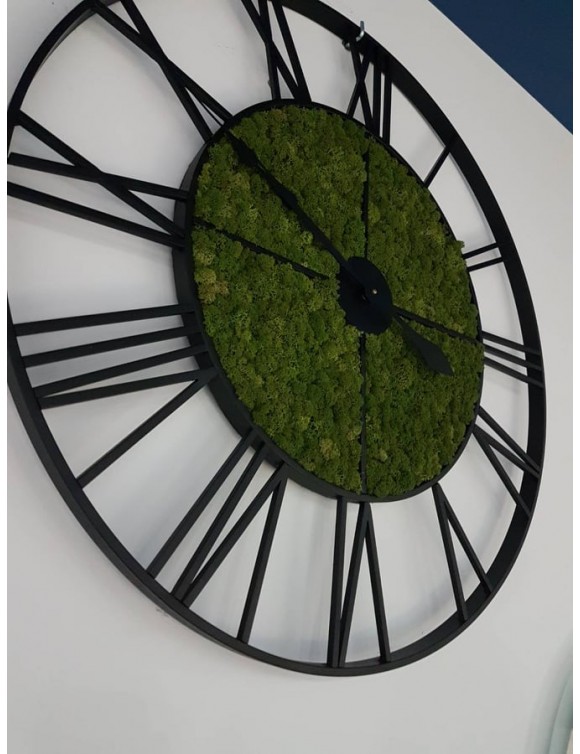 Oryginalny i nowoczesny zegar retro z wypełnieniem z chrobotka. Zegar stanie się najpiękniejszą ozdobą w Twoim domu lu biurze i wzbudzi zachwyt odwiedzających gości. Zegar wykonywany jest na zamówienie Klienta. Klient decyduje o kolorze wypełnienia. Do wybory mamy kilka kolorów mchu.