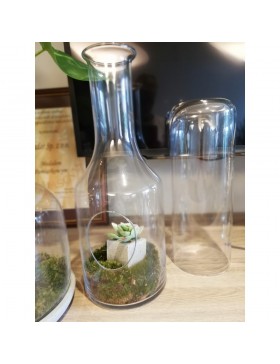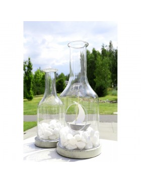 Piękne ozdobna butelka z okienkiem i betonową podstawą. Będzie doskonała do ekspozycji roślin i kwiatów czy kompozycji z niewielkich elementów dekoracyjnych