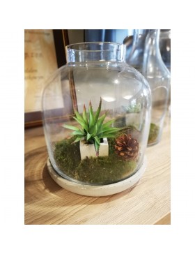 Oryginalna szklana dekoracja w kształcie słoju idealna do stworzenia kompozycji z mchu i niewielkich roślin. Posłuży również jako świecznik, a betonowa podstawa sprawdzi się jako patera na owoce.Oryginalna szklana dekoracja w kształcie słoju idealna do stworzenia kompozycji z mchu i niewielkich roślin. Posłuży również jako świecznik, a betonowa podstawa sprawdzi się jako patera na owoce.
