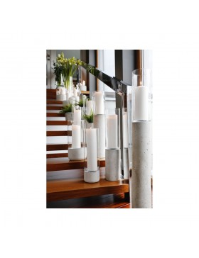 Lampiony TUBO to nowoczesne, designerskie produkty z podstawą z betonu architektonicznego i idealnie komponującego się z nią szkła. Stanowią alternatywę dla tradycyjnego oświetlenia. Te stylowe i eleganckie LAMPIONY prezentują odrębną dekorację kreując charakterystykę wnętrz. Dekorują stoły, komody czy parapety. TUBO są wprost idealnym rozwiązaniem do wystroju sal bankietowych i restauracyjnych. LIME STORE oferuje pięć wariantów :
