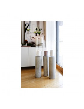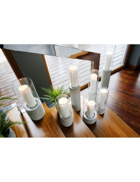 Lampiony TUBO to nowoczesne, designerskie produkty z podstawą z betonu architektonicznego i idealnie komponującego się z nią szkła. Stanowią alternatywę dla tradycyjnego oświetlenia. Te stylowe i eleganckie LAMPIONY prezentują odrębną dekorację kreując charakterystykę wnętrz. Dekorują stoły, komody czy parapety. TUBO są wprost idealnym rozwiązaniem do wystroju sal bankietowych i restauracyjnych. LIME STORE oferuje pięć wariantów :