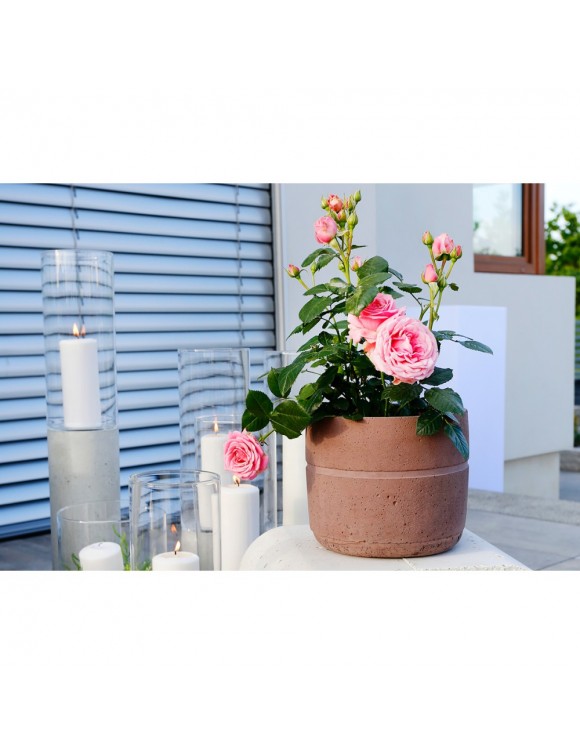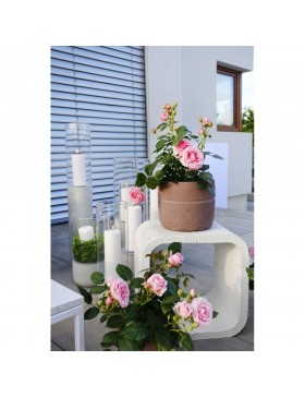 Donica o prostym kształcie z delikatnym, ozdobnym rowkiem. Znakomicie sprawdzi się jako osłonka do kwiatów i pięknie udekoruje zarówno nowoczesne jak i klasyczne wnętrza. Wykonana z betonu architektonicznego będzie trwałą ozdobą ogrodów i tarasów.