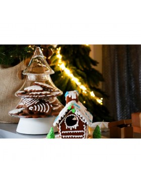 Nowoczesna i oryginalna choinka z betonową podstawą i szklanym kloszem. Sprawdzi się jako świąteczna ozdoba czy piękny Lampion, który ozdobi parapet, komodę czy wigilijny stół.