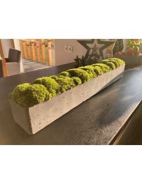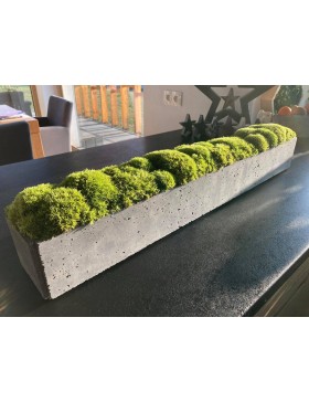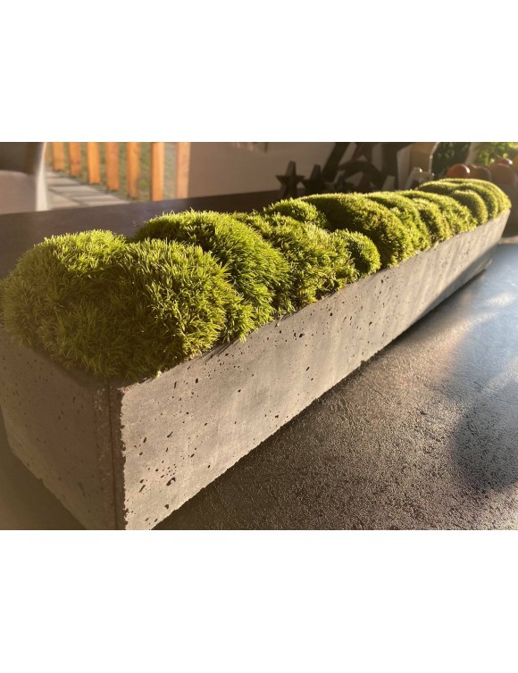 Donica betonowa z mchem poduszkowym 80cm to niezwykle oryginalny i niepowtarzalny akcent, który ożywi wnętrze każdego domu oraz biura. W ofercie posiadamy szeroki wybór struktur i kolorów donic oraz różnorodną kolorystykę mchu: jasno zielony, ciemno zielony i średnio zielony. Bogaty wybór kolorów oraz struktur sprawi, iż donica z mchem dostosuje się do każdego pomieszczenia i nada mu niewielki element naturalności.