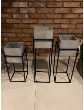 owoczesny, metalowy kwietnik, stojak loft z donicą betonową. Piękny minimalistyczny wykonany z czarnego metalu doskonale wkomponuje się w każde loftowe wnętrze. Stojak, donica sprawdzi się również w aranżacjach na tarasie, balkonie czy w biurze. Solidne wykonania sprawi, że przez wiele lat będzie zdobiła Nasze wnętrza. W połączeniu z kwietnikami o różnych rozmiarach stworzy niezwykłe, oryginalne dekoracje w loftowym wnętrzu.