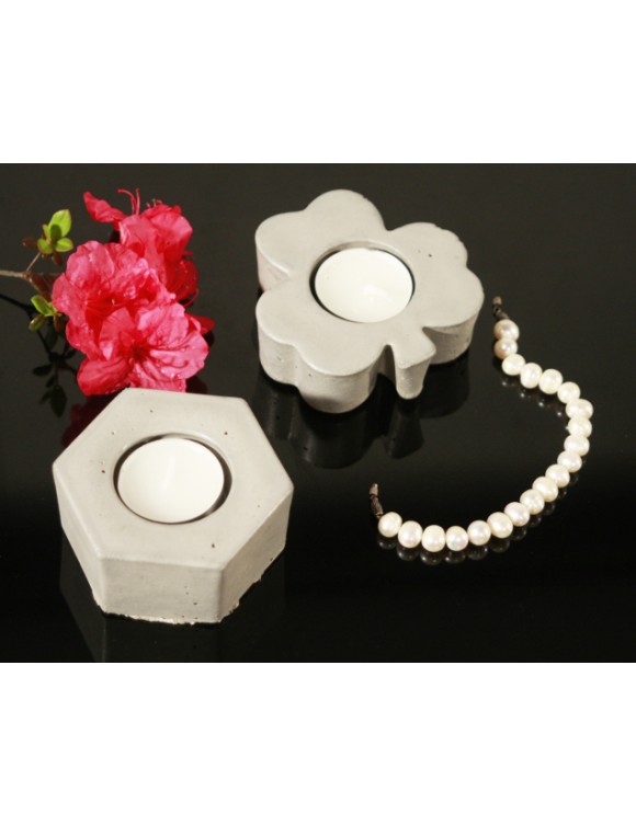 Świecznik dekoracyjny w kształcie listka lub sześciokąta. Świeczniki z betonu architektonicznego stanowią oryginalną ozdobę, a dzięki bogatej kolorystyce oraz niepowtarzalnej surowej strukturze betonu dopasują się zarówno do nowoczesnego jak i klasycznego wnętrza. Różnorodność kolorów oraz struktur świeczników sprawiają, że każdy jest niepowtarzalny i wyjątkowy. Taki świecznik to także doskonały pomysł na prezent, który z pewnością zachwyci obdarowaną osobę. Mamy w swojej ofercie również świeczniki pojedyncze, podwójne i potrójne, w różnych wzorach.